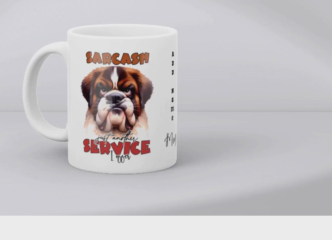 This hilarious “Sarcasm – Just Another Service I Offer” mug features a grumpy yet adorable dog who perfectly sums up that Monday-morning mood.
