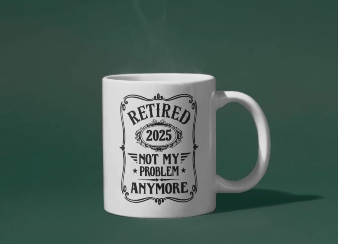 This “Retired 2025 – Not My Problem Anymore” mug is the perfect way to mark the start of a new, stress-free chapter. Designed with a bold vintage look, it’s ideal for anyone ready to swap meetings for mornings of peace, coffee, and laughter.