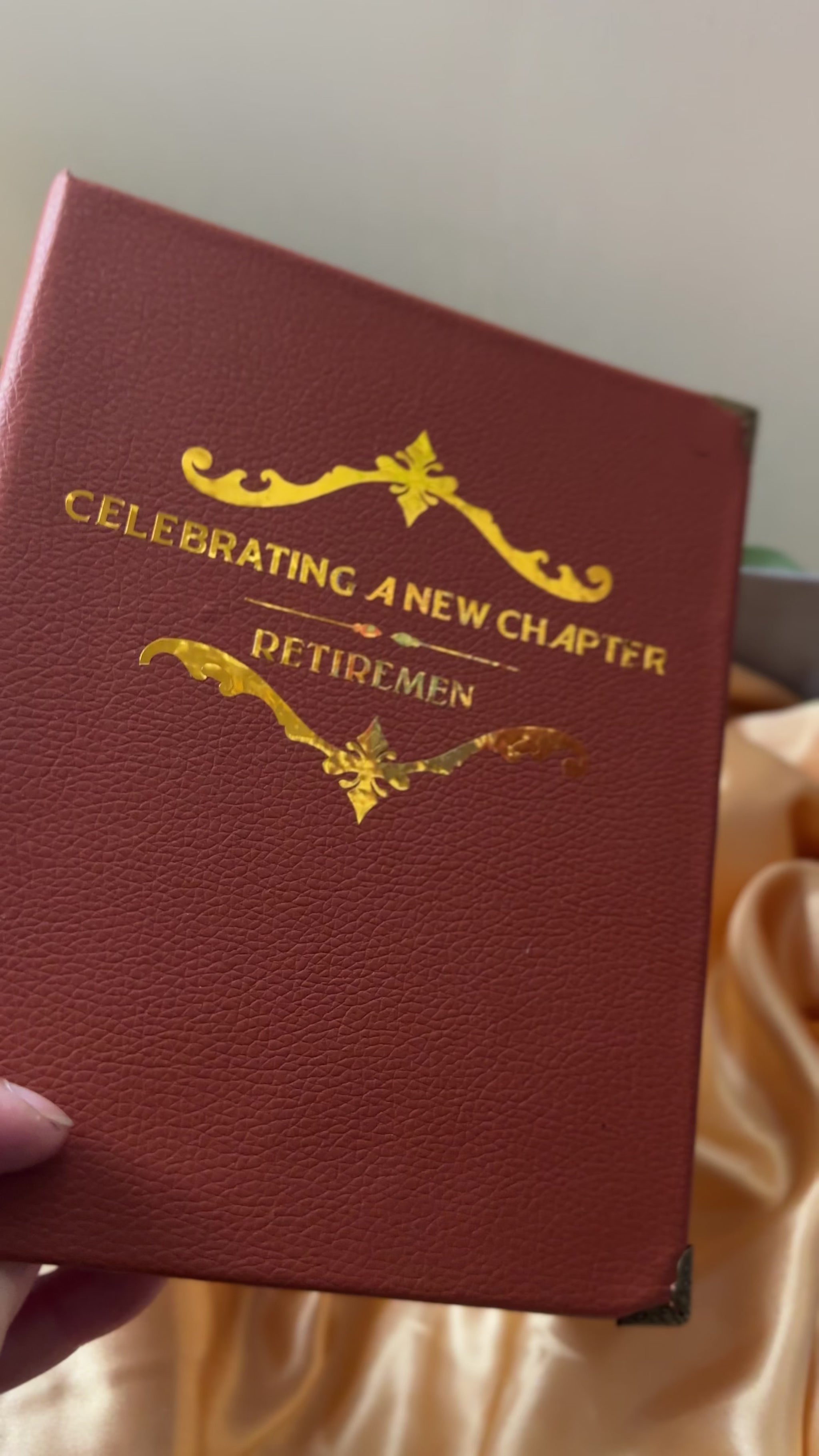 • Personalized photo frame insert on the opposite page—perfect for displaying a memorable team photo or special moment, complete with the retiree’s name for a one-of-a-kind keepsake.
